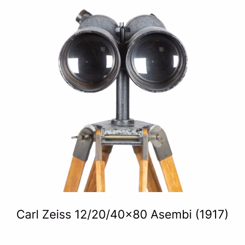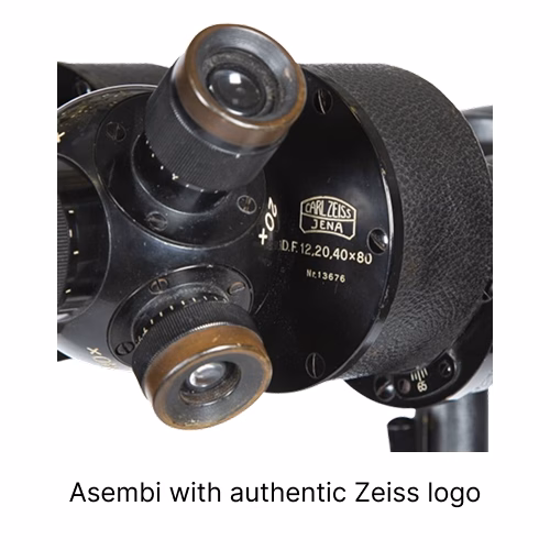 Here’s the full description- This is a rare late 1930’s Carl Zeiss turret binocular offering 20 and 40 times magnification, with 100mm objective lenses. The binoculars have markings of Carl Zeiss. These were the eyes of the Wehrmacht used as radar system to take down the spitfires. These are rare original optics in a distinctly straight-body bulletproof instrument. Undeniably a true piece of artwork , these binoculars offer astounding visual clarity. What you’re seeing are a pair of Silver polished “Carl Zeiss Jena”, the eyepiece turret with locking lever and indications of magnification “20x” and “40x”. WWII Binoculars. Set on a 1930’s military, re-polished Carl Zeiss stand.