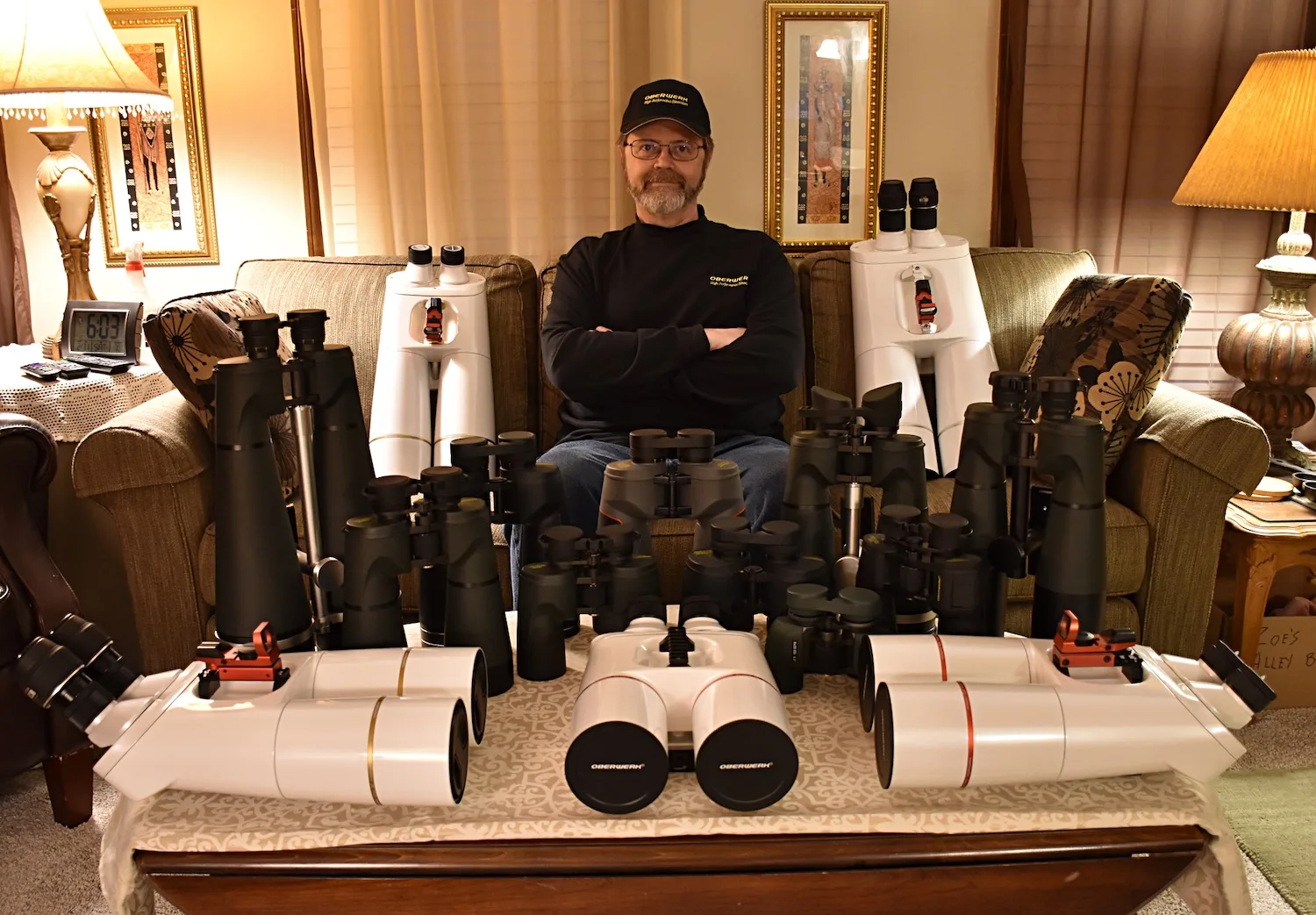 Fiske Miles is one of the most knowledgeable amateur astronomers we know of. He's well-known on the astronomy forum cloudynights.com for his prolific binocular observing reports and equipment comparisons/reviews. Over the last few years, Fiske has purchased almost every binocular Oberwerk offers, including all four sizes of XL Series binocular telescopes- and has kept, and continues to use, all of them! He also has purchased at least one of every binocular mount option we offer.