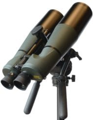 The Oberwerk Deluxe Series includes the 10×50, 15×70, 20x80mm Deluxe III and the 25x100mm CF Deluxe, all with convenient center-focus, and the 25x100mm IF Deluxe, which has precise individual focus. The newest member of the Deluxe family, the 20×65 ED, has exotic ED glass objectives and a long focal length, which almost completely eliminate chromatic aberration. These binoculars offer excellent image quality, at prices that are substantially-below our Ultra Series. They are ideal for amateur astronomy, as well as long-range terrestrial viewing. The relatively-compact 20×80 Deluxe III also has a triplet objective design, which limits the chromatic aberration that would normally be present in such a short focal length instrument. Of course they are all fully broadband multi-coated, waterproof, and nitrogen-filled. The Deluxe Series binoculars feature rugged construction, with a rubber-armored metal body. All models have 1.25″ filter threading on the eyepieces. The 20×80 and 25×100’s have a built-in mount, which bridges the body hinge to the objective hinge. This objective hinge helps to maintain collimation (alignment) if the binocular is subjected to bumps and impacts. The built-in mount connects directly to a tripod head without adapters. Includes objective and ocular caps. The 10×50 comes with a rugged padded case, the larger models include our new-for-2017 Heavy-Duty aluminum-frame case.