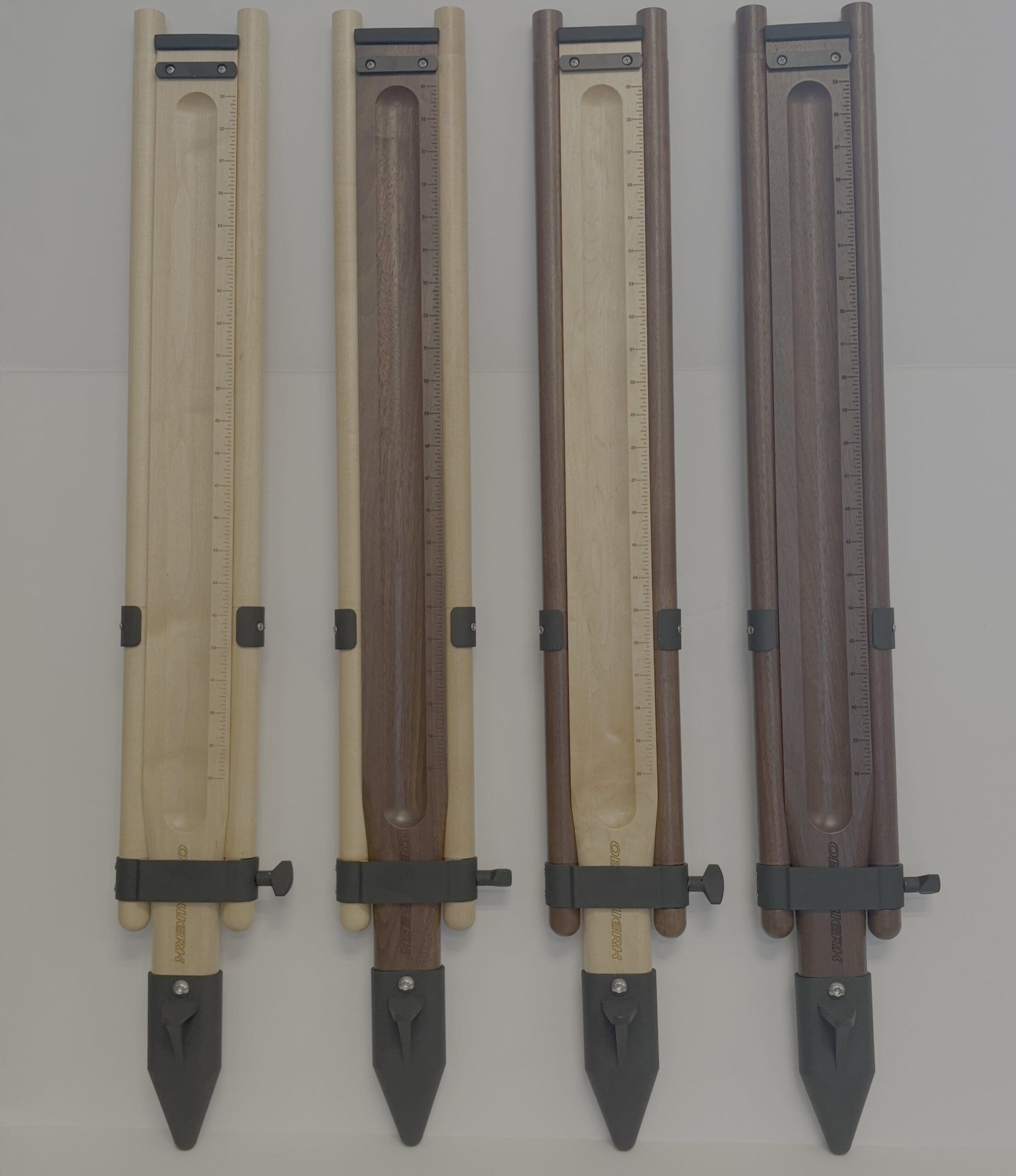 Oberwerk TR3 Hardwood Binocular Tripods are the finest, safest, and most beautiful tripods on the market. They are custom-built from solid American maple (light honey finish) or optional walnut (dark and rich). They feature Slip-Stop (U.S. Pat. No. 10,281,081) leg clamps to prevent an accidental crash from a change in humidity levels. Conventional wood tripods that are left set up are prone to leg slippage due to changes in humidity. A leg clamp that was tight can loosen when humidity levels drop, causing the wood to slightly shrink- possibly resulting in a catastrophic crash of whatever the tripod is supporting. Our Slip-Stop tripod legs incorporate a visually-imperceptible reverse taper in the center section, so if a leg clamp slips due to a drop in humidity, it will re-tighten after slipping an inch or two. Simple, but effective! The legs are laser-engraved with a length scale in 1/8″ increments, for precise height adjustments. All the non-wood components* of the tripod are aluminum (no plastic), including the adjustable spreader, with engraved leg angle markings. All screws & bolts are stainless steel. Available in different configurations and options for use with larger binoculars, cameras, and telescopes weighing up to 40 lbs.