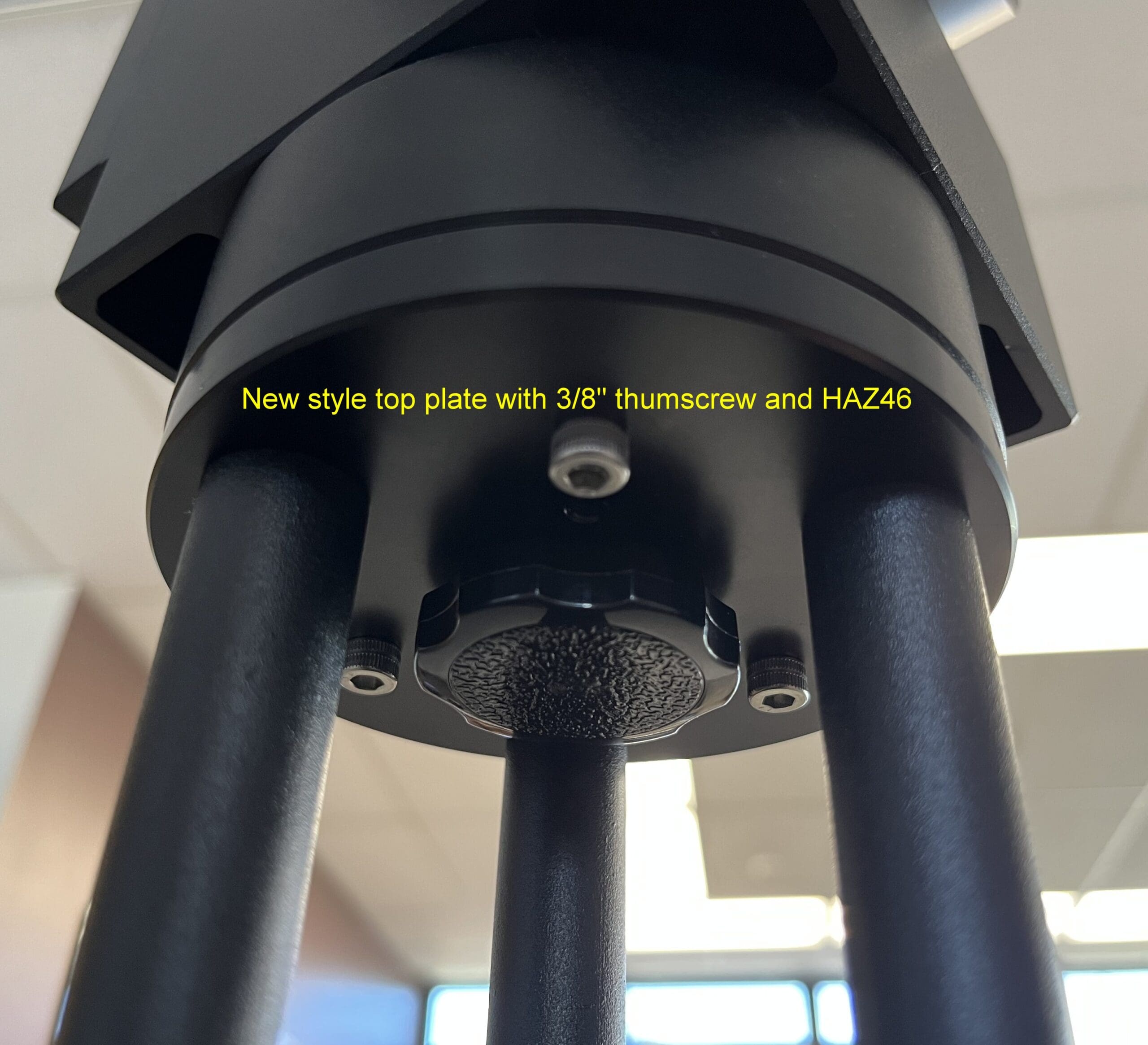 I have the TR3 tripod in walnut~it is gorgeous~along with the mini pier with the plate that has 3 studs and 3/8” thumbscrew. I also ordered the iOptron HAZ46 through Oberwerk. I absolutely love the top plate with 3 studs, it is perfect for attaching my iOptron HAZ46 onto the mini pier. Before, I had the single fixed 3/8” stud, which worked but was a little harder for me as I had to twist my mount onto the mini pier. With the 3-stud plate, I just set my mount on the mini pier and tighten the thumb screw from underneath. No more twisting my mount to screw it onto the mini pier. I did take a silver sharpie and put tiny little marks on the base of the mount and the 3-stud plate to allow me to set my mount even faster. So thankful for that 3-stud plate, and so very thankful I chose Oberwerk. It is such a good feeling, after all that research on what mount and tripod to get, to know I made the right choice in going with Oberwerk . I am very happy with my equipment.