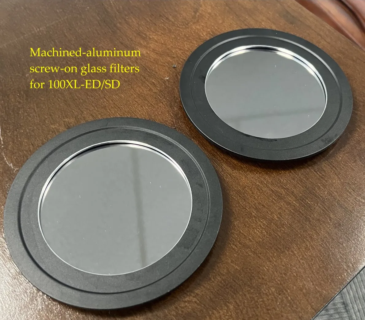 These filters fit the XL100’s perfectly! No slop or tightness. Gives a wonderful orange tint to the image, unlike the mylar types that have a whitish blue cast. They look great with that brushed steel finish.